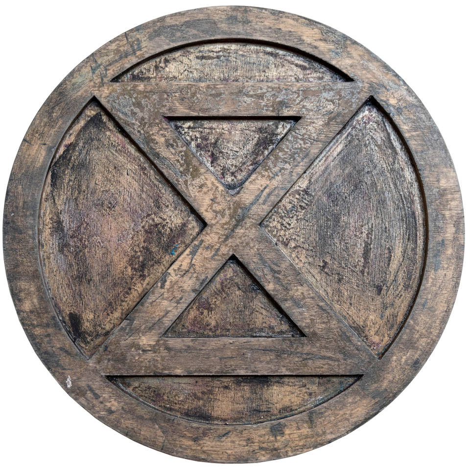 3D-printed Extinction Rebellion logotype woodblockNot on display -