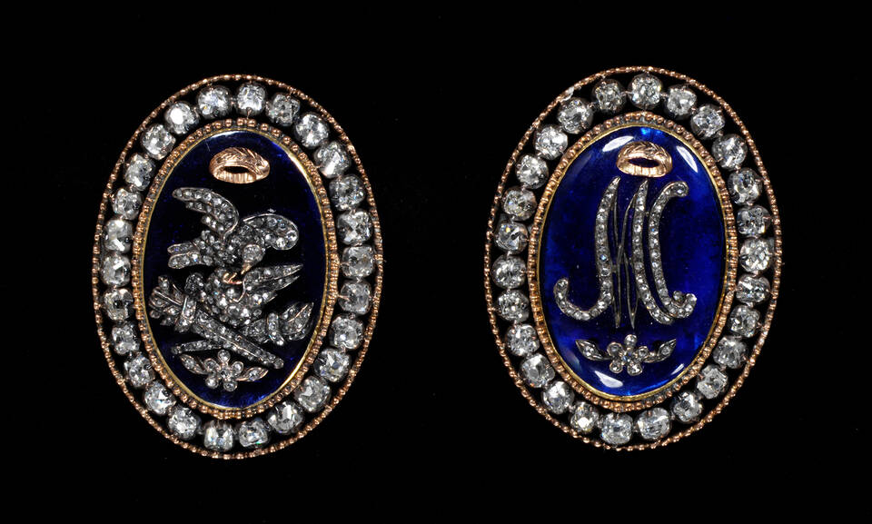Bracelet clasps, unknown maker, about 1770, France, gold with brilliant cut diamonds -