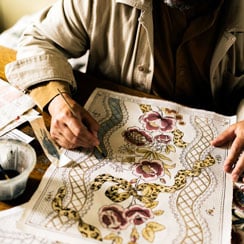 Named for a member of the French court, Antoinette Poisson is a French design house seeking to revive the charm of 18th-century interior décor for the modern age. Founded by trained paper conservators Jean-Baptiste Martin and Vincent Farelly in 2012, Antoinette Poisson specialises in wallpaper and domino paper, using their expertise in classic aesthetics and traditional production techniques to create new patterns alongside reissued historical designs.