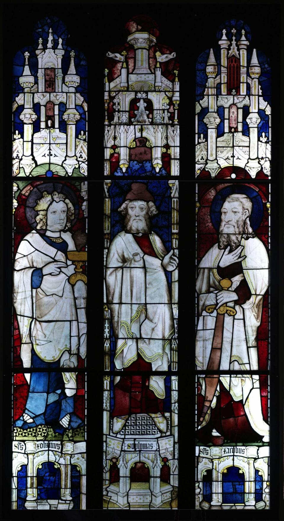 Prophet Ezekiel flanked by Saints John the Evangelist and James the Less, window, by Thomas of Oxford, about 1393, Oxfordshire, EnglandV&A South KensingtonOn display